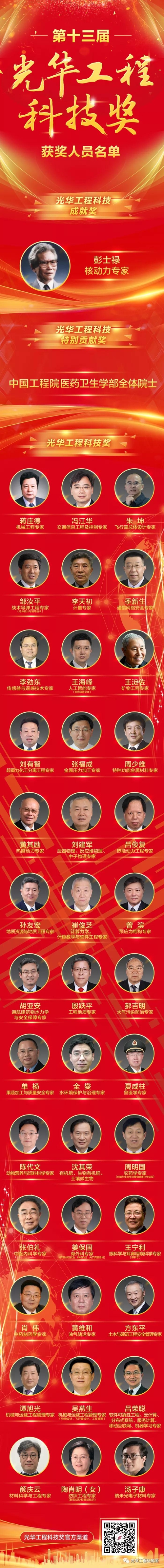 11月8日,第(di)(di)十(shi)三(san)(san)屆(jie)光華工(gong)(gong)程(cheng)科技獎(jiang)揭曉儀式在北京隆重舉行。中國兵器工(gong)(gong)業(ye)集團有限公司科技委副主任委員、戰術導彈(dan)工(gong)(gong)程(cheng)專家鄒汝(ru)平獲(huo)(huo)第(di)(di)十(shi)三(san)(san)屆(jie)光華工(gong)(gong)程(cheng)科技獎(jiang)(獲(huo)(huo)獎(jiang)人員全名單及(ji)鄒汝(ru)平事跡(ji)附后(hou))。 光華工(gong)(gong)程(cheng)(cheng)(cheng)科(ke)技(ji)獎由中國(guo)工(gong)(gong)程(cheng)(cheng)(cheng)院(yuan)主管(guan),每兩年頒(ban)發(fa)(fa)(fa)一次,目前已是(shi)第十三屆,被譽為“中國(guo)工(gong)(gong)程(cheng)(cheng)(cheng)界最(zui)高獎項”,極大地激勵了我(wo)國(guo)工(gong)(gong)程(cheng)(cheng)(cheng)師、科(ke)學家從事工(gong)(gong)程(cheng)(cheng)(cheng)科(ke)技(ji)研(yan)究、發(fa)(fa)(fa)展、應用(yong)的積極性和創造(zao)(zao)性。根據光華工(gong)(gong)程(cheng)(cheng)(cheng)科(ke)技(ji)獎候(hou)選人提(ti)名要求(qiu),候(hou)選人需在(zai)重大工(gong)(gong)程(cheng)(cheng)(cheng)設計、研(yan)制、建造(zao)(zao)、生產、運行、管(guan)理(li)等方面解決關鍵科(ke)學技(ji)術(shu)問(wen)題或在(zai)工(gong)(gong)程(cheng)(cheng)(cheng)科(ke)學技(ji)術(shu)及(ji)工(gong)(gong)程(cheng)(cheng)(cheng)管(guan)理(li)領域有重要發(fa)(fa)(fa)現、發(fa)(fa)(fa)明,并(bing)有顯(xian)著應用(yong)成效,或者(zhe)是(shi)應用(yong)本人研(yan)究成果、發(fa)(fa)(fa)明創造(zao)(zao),發(fa)(fa)(fa)展高新技(ji)術(shu)及(ji)相關產業,成效特別顯(xian)著者(zhe)才可(ke)提(ti)名。今年,全國(guo)范圍內共產生了296名有效候(hou)選人。 此次揭曉儀式正式公布了從296名候選人中評選出的(de)(de)第十三屆(jie)光(guang)(guang)華工(gong)程(cheng)(cheng)(cheng)(cheng)科(ke)技(ji)成就獎(jiang)、光(guang)(guang)華工(gong)程(cheng)(cheng)(cheng)(cheng)科(ke)技(ji)特別(bie)貢獻(xian)(xian)獎(jiang)以及光(guang)(guang)華工(gong)程(cheng)(cheng)(cheng)(cheng)科(ke)技(ji)獎(jiang)的(de)(de)獲(huo)得者,最(zui)終僅(jin)有(you)40位(wei)專(zhuan)家和1個團體獲(huo)獎(jiang)。本屆(jie)光(guang)(guang)華工(gong)程(cheng)(cheng)(cheng)(cheng)科(ke)技(ji)獎(jiang)的(de)(de)獲(huo)獎(jiang)科(ke)學家們,緊密圍(wei)繞國家重(zhong)(zhong)大戰略(lve)需(xu)求,瞄準(zhun)經濟建設(she)和事關國家安全的(de)(de)重(zhong)(zhong)大工(gong)程(cheng)(cheng)(cheng)(cheng)科(ke)技(ji)問題(ti),緊貼新時代社(she)會民生現(xian)實需(xu)求和軍民融合需(xu)求,加快自主(zhu)創(chuang)新成果(guo)轉化應用,為創(chuang)新驅動(dong)發展,建設(she)科(ke)技(ji)強國,以及實現(xian)“兩個一百年(nian)”奮斗目標和中國夢做(zuo)出了重(zhong)(zhong)要(yao)貢獻(xian)(xian)。 獲獎人員全名單