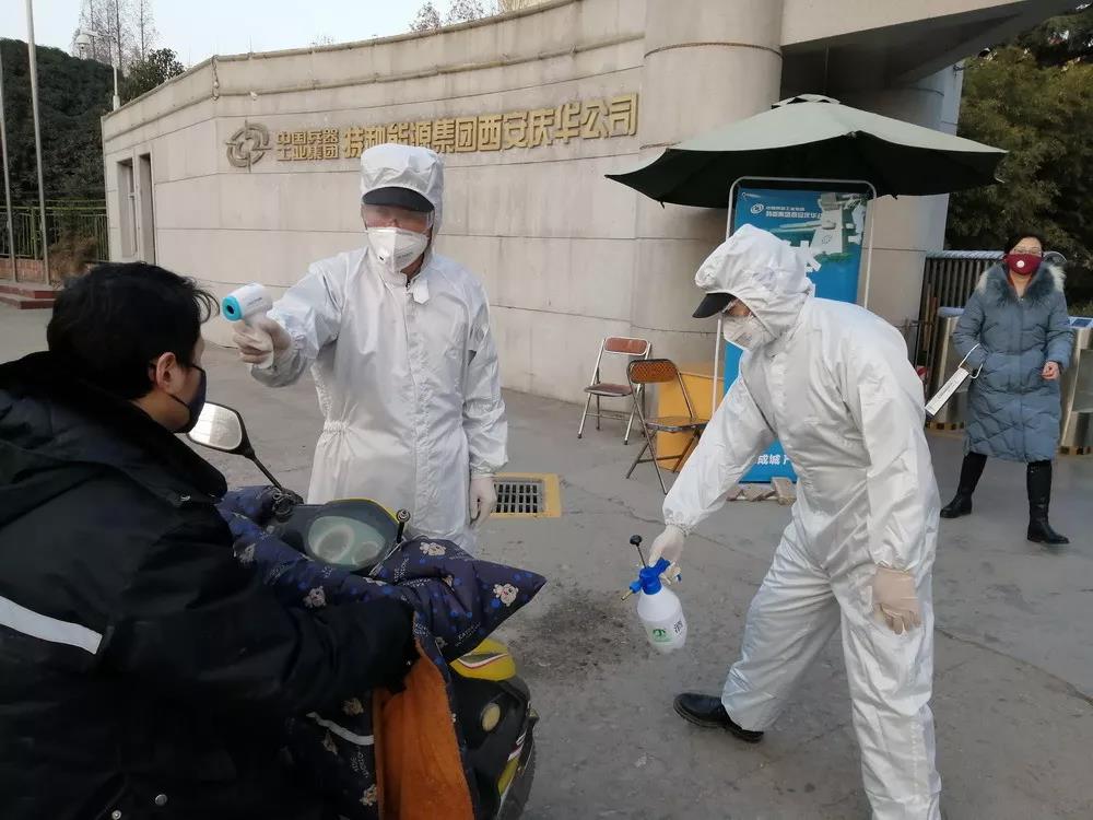 北化研(yan)究院集團(tuan)慶陽化工利(li)用企業(ye)微(wei)信(xin)公眾(zhong)號發(fa)布(bu)防護(hu)常識,嚴格控制出入廠(庫(ku))區(qu)人員(yuan),對(dui)入廠人員(yuan)進(jin)(jin)行體溫檢(jian)測,禁止外來車(che)輛進(jin)(jin)入廠區(qu),最大限度地(di)確保公司安全。同時,對(dui)各單位(部門(men))配發(fa)消毒液(ye)和口罩(zhao),定時對(dui)作(zuo)業(ye)場(chang)所(suo)進(jin)(jin)行消毒。