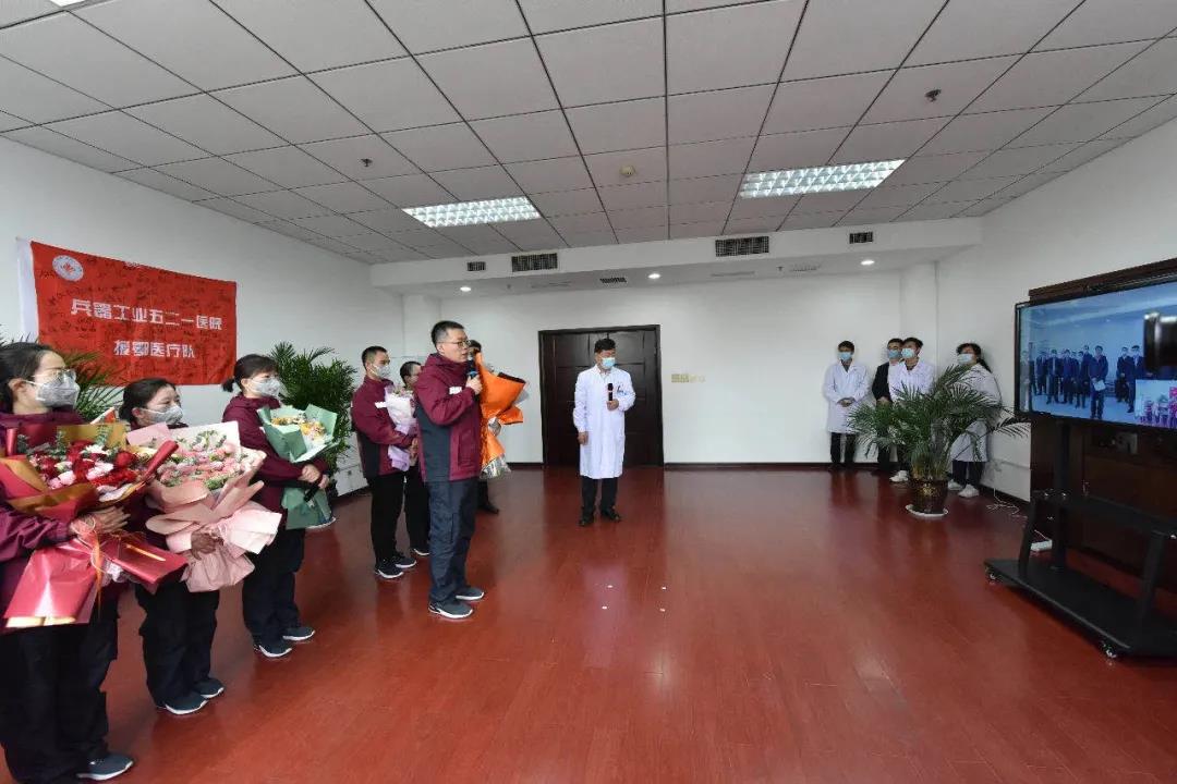置業集團521醫院(yuan)2月2日(ri)、2月15日(ri)分兩批派出杭博、郭苓、緱豪兵、呂戈、侯永生、曹利娜、楊嬌等(deng)7名醫護(hu)人員(yuan)(yuan)馳援(yuan)(yuan)湖(hu)北抗疫(yi)一線。4月21日(ri)上午,返程隊(dui)員(yuan)(yuan)全部(bu)結束(shu)休(xiu)整平安回(hui)院(yuan)。焦開河(he)專程視頻連線521醫院(yuan)7名援(yuan)(yuan)鄂醫療隊(dui)隊(dui)員(yuan)(yuan),代表集團公司(si)黨組對援(yuan)(yuan)鄂醫療隊(dui)隊(dui)員(yuan)(yuan)致以(yi)崇高的(de)敬意和(he)誠摯的(de)慰問。