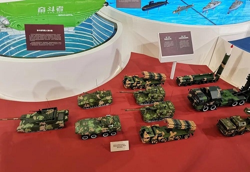 ▲我國自主(zhu)研制(zhi)的主(zhu)戰坦克、輪式(shi)步兵戰車和(he)遠程火箭炮等(deng)陸軍(jun)主(zhu)戰裝備 |