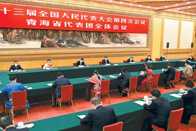 3月7日,中共中央總書記、國家主(zhu)席、中央軍委主(zhu)席習近平參加十三屆全國人大四次(ci)會議青海(hai)代表團的(de)審(shen)議。新華社記者 李濤(tao)攝