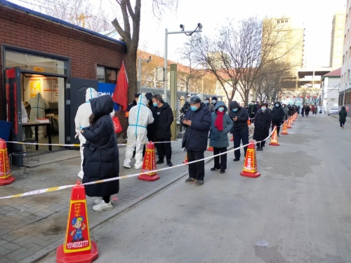 當(dang)前(qian),內蒙古自治區疫情防(fang)控(kong)形勢依(yi)然(ran)嚴峻,包頭市中風險(xian)地區已達7個。面對(dui)疫情,中國兵器工業集團(tuan)有限(xian)公(gong)司駐(zhu)包頭單位積極行動,支援當(dang)地疫情防(fang)控(kong),共筑安全防(fang)線。 凌晨集結,投身核酸檢測工作 來自一(yi)機(ji)集(ji)團(tuan)、北重集(ji)團(tuan)、材料院52所包頭事(shi)業部(bu)的(de)共計(ji)500余(yu)名志(zhi)愿者(zhe)密切配合包頭市防疫(yi)部(bu)門、街道社區進行全員核(he)酸檢(jian)測,同時做好信息登記、維護秩(zhi)序(xu)、宣傳政策等工作,確保核(he)酸檢(jian)測全覆蓋(gai)。2月20日凌(ling)晨,在(zai)零下20度的(de)寒風中,志(zhi)愿者(zhe)全部(bu)在(zai)支援地集(ji)結到(dao)位,做好核(he)酸檢(jian)測前的(de)相(xiang)關準備。 一機集團黨員突擊隊 志愿者(zhe)們搭建臨時(shi)帳(zhang)篷(peng),用圍擋封(feng)控家屬區,配合醫護人員(yuan)組織居(ju)民(min)排(pai)隊(dui),有序(xu)進(jin)行核酸檢測(ce)。檢測(ce)工作開始(shi)后,志愿者(zhe)們用溫(wen)暖的話語(yu)安(an)撫居(ju)民(min)們的情緒(xu),引導(dao)居(ju)民(min)有序(xu)入(ru)場,檢測(ce)居(ju)民(min)體(ti)溫(wen),登(deng)(deng)記核對信息(xi),轉運檢測(ce)樣本(ben)。為了盡可能提(ti)高檢測(ce)工作效(xiao)率,志愿者(zhe)在(zai)各條核酸檢測(ce)通(tong)道指導(dao)群眾(zhong)掃碼登(deng)(deng)記,一(yi)對一(yi)幫助老人、兒童等不便使用智能手機的群眾(zhong)解決困難,使其(qi)能順利(li)進(jin)行核酸檢測(ce)。