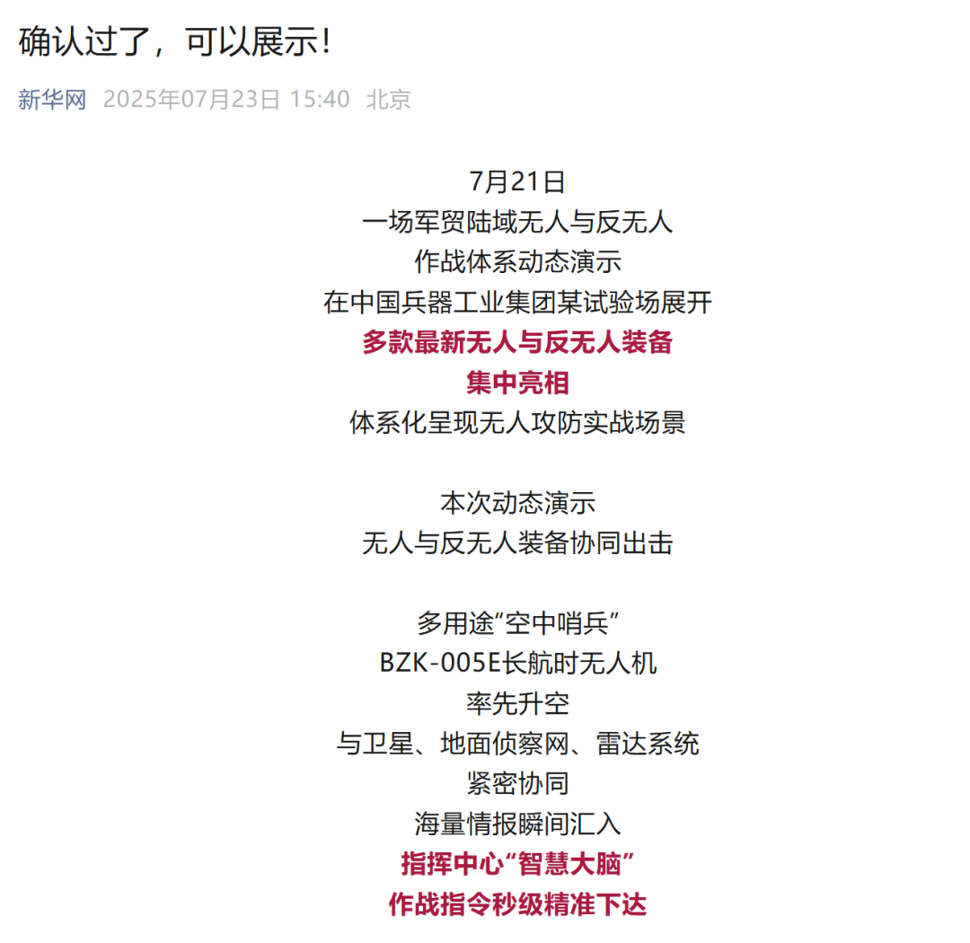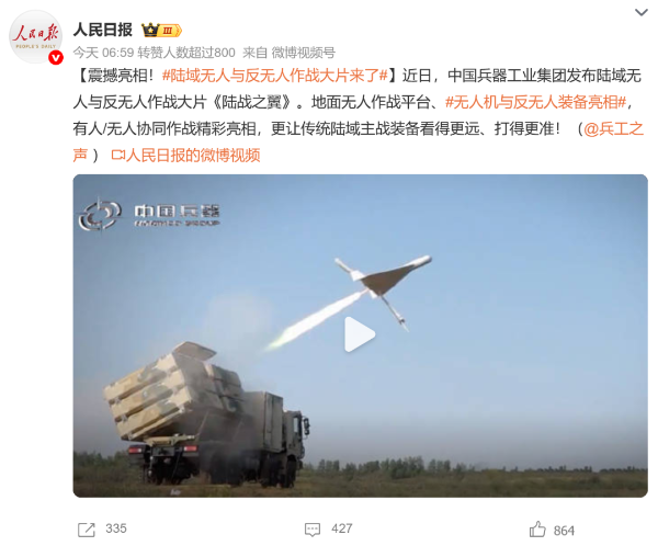 各主流媒體廣泛報道兵器工業集團軍貿陸域無人與反無人作戰體系主題日活動 |