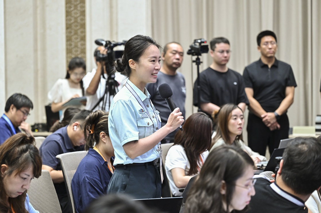 8月20日(ri),國(guo)務院新聞辦(ban)公(gong)(gong)室(shi)在(zai)(zai)北京(jing)舉行新聞發布會(hui),閱(yue)兵(bing)領導小組(zu)辦(ban)公(gong)(gong)室(shi)副(fu)主任、中(zhong)央軍委聯合參謀部作戰局少將(jiang)副(fu)局長吳澤棵,中(zhong)國(guo)人民(min)解放軍中(zhong)部戰區閱(yue)兵(bing)指揮機(ji)構辦(ban)公(gong)(gong)室(shi)常務副(fu)主任、政(zheng)治工作部少將(jiang)副(fu)主任徐貴忠介紹閱(yue)兵(bing)準備工作有關情況,并答記(ji)者問。這是記(ji)者在(zai)(zai)現場(chang)提問。