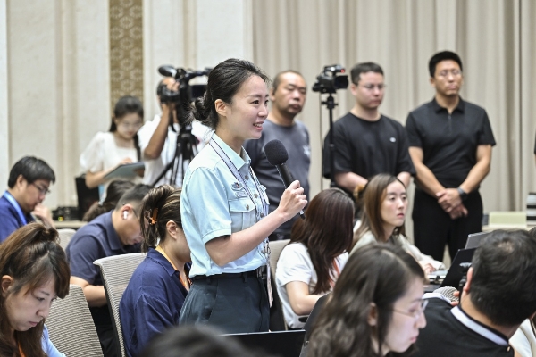 8月20日(ri),國務院新聞辦公(gong)室(shi)在北京舉(ju)行新聞發(fa)布會,閱(yue)兵領導小組辦公(gong)室(shi)副主任(ren)、中(zhong)央軍委聯合參謀部(bu)作(zuo)戰局(ju)少(shao)將副局(ju)長吳澤(ze)棵,中(zhong)國人民解放軍中(zhong)部(bu)戰區閱(yue)兵指揮機構(gou)辦公(gong)室(shi)常務副主任(ren)、政治工(gong)作(zuo)部(bu)少(shao)將副主任(ren)徐貴忠介紹(shao)閱(yue)兵準備工(gong)作(zuo)有關情(qing)況,并答記者(zhe)問。這是記者(zhe)在現場提問。