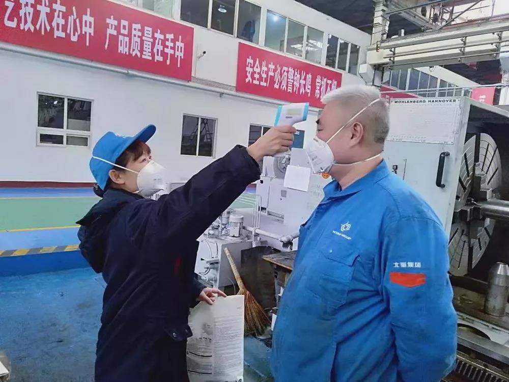 北重集團為在崗工(gong)(gong)作人員準備了洗手液、口罩、噴壺等消毒防護(hu)器材,對(dui)(dui)進入廠房人員嚴格登記和測量體溫(wen),對(dui)(dui)工(gong)(gong)作人員一日四(si)次檢測體溫(wen)并進行記錄,在做好疫(yi)情防控的同時保證生產。