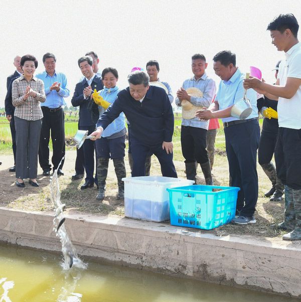 習近平總書記9日在銀川考(kao)察調研。他先后來到賀(he)蘭縣稻漁(yu)空(kong)間鄉村生(sheng)態觀光園(yuan)、賀(he)蘭山(shan)東麓(lu)葡萄種植園(yuan),了解(jie)當地發展特色農業(ye)產業(ye)、加強賀(he)蘭山(shan)生(sheng)態保(bao)護等情(qing)況。 (攝影:新華社(she)記者 鞠鵬、謝(xie)環馳、王曄、燕雁(yan)) |