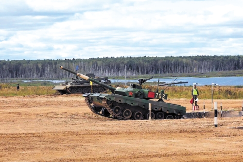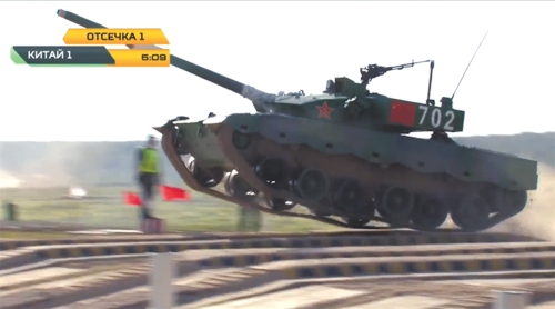 莫斯科當地時間9月(yue)5日,“國(guo)際軍(jun)事比賽(sai)(sai)-2020”“坦克(ke)兩項”決賽(sai)(sai)在(zai)阿拉(la)比諾賽(sai)(sai)場展開角(jiao)逐,中(zhong)國(guo)參賽(sai)(sai)隊駕駛96B坦克(ke)憑借出色發揮,射(she)擊環節24發24中(zhong),以1小時29分30秒的成績(ji)奪得亞軍(jun),創中(zhong)國(guo)歷次參賽(sai)(sai)最好(hao)成績(ji)。 今(jin)年決賽是在中國、俄羅斯(si)、白(bai)俄羅斯(si)、阿塞拜疆之(zhi)間角(jiao)逐,“坦克(ke)兩項”決賽采用(yong)接(jie)力賽制(zhi),每個參賽隊派出(chu)三組(zu)選手駕駛坦克(ke)行駛12圈(quan),通(tong)過(guo)各(ge)類障礙,對(dui)24個目標進行射擊。  703車組通過(guo)反(fan)坦克壕