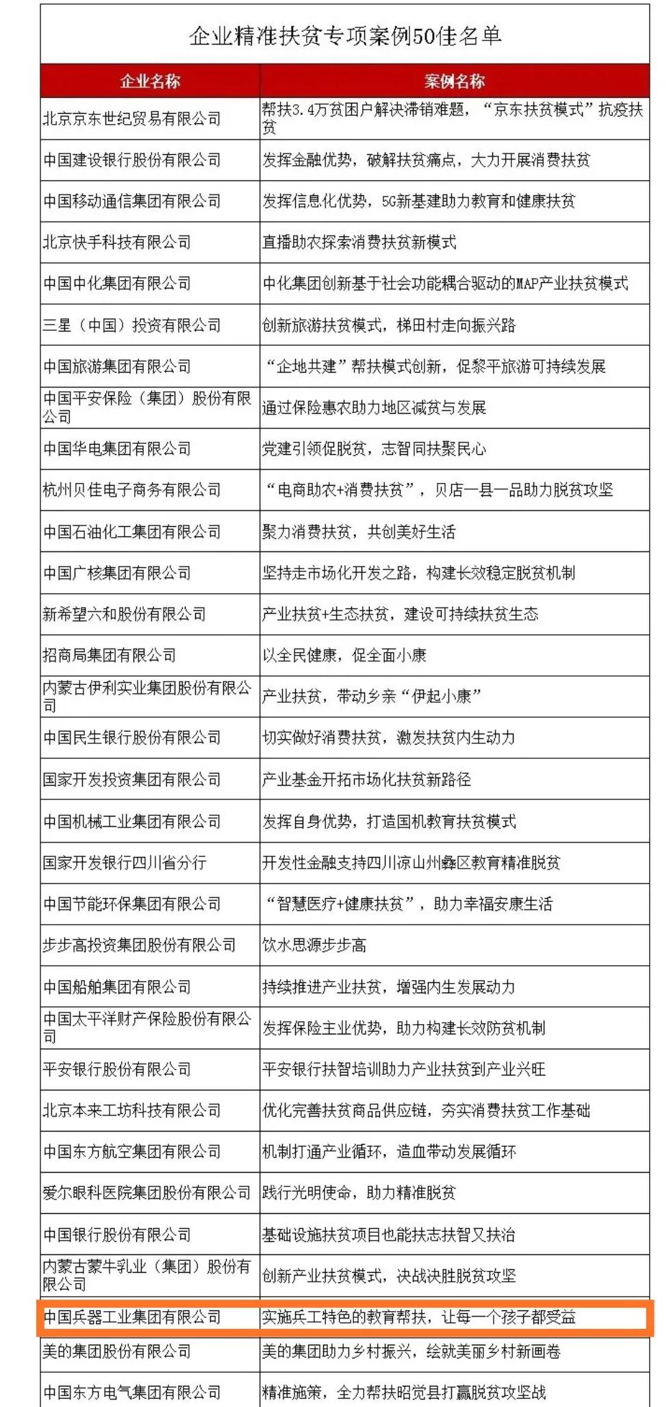 兵器工業集團教育扶貧獲評國務院扶貧辦2020年企業精準扶貧專項案例“50佳” |