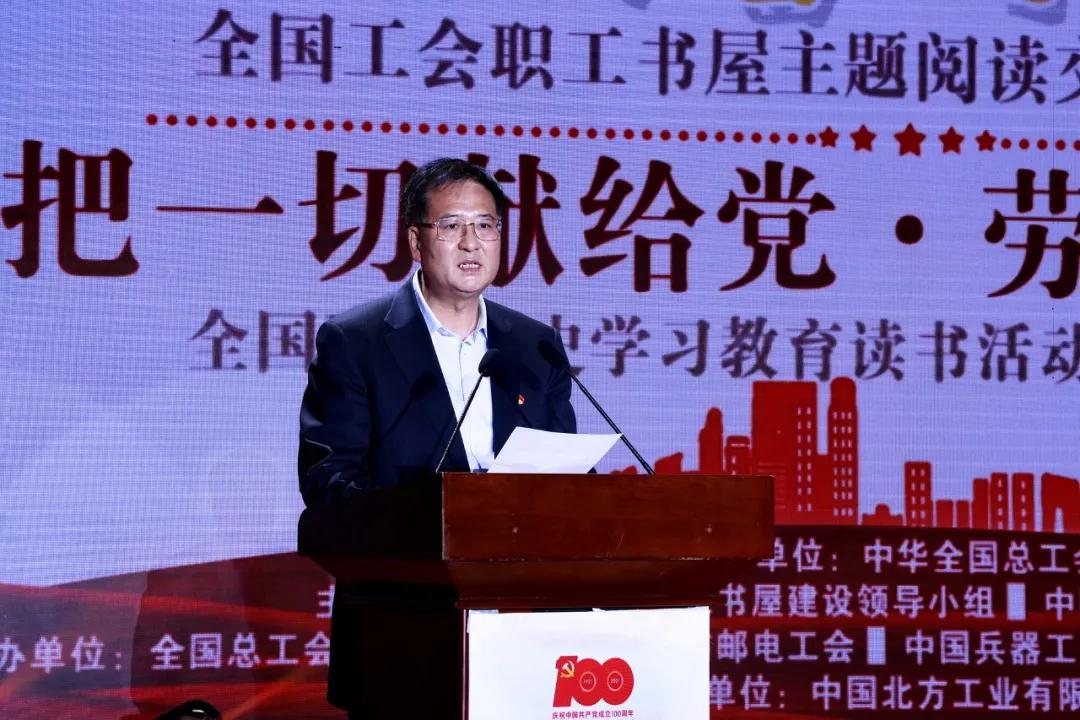 活動(dong)(dong)由全總(zong)(zong)宣教部、中(zhong)國(guo)(guo)(guo)國(guo)(guo)(guo)防(fang)郵(you)電工(gong)會(hui)、中(zhong)國(guo)(guo)(guo)兵(bing)器(qi)工(gong)業集團(tuan)(tuan)有限(xian)公(gong)司黨群工(gong)作部、中(zhong)國(guo)(guo)(guo)工(gong)人(ren)出(chu)版(ban)社共(gong)同承(cheng)辦,中(zhong)國(guo)(guo)(guo)北方工(gong)業有限(xian)公(gong)司協辦。來自中(zhong)華全國(guo)(guo)(guo)總(zong)(zong)工(gong)會(hui)、全國(guo)(guo)(guo)工(gong)會(hui)職工(gong)書(shu)屋建設領導小(xiao)組成(cheng)員、部分(fen)全國(guo)(guo)(guo)工(gong)會(hui)職工(gong)書(shu)屋公(gong)益代(dai)言人(ren),各(ge)全國(guo)(guo)(guo)產業工(gong)會(hui)、全總(zong)(zong)各(ge)部門負責同志,部分(fen)省市總(zong)(zong)工(gong)會(hui)副主(zhu)席、宣教部長,兵(bing)器(qi)工(gong)業集團(tuan)(tuan)一線勞模工(gong)匠、職工(gong)代(dai)表等(deng)參加活動(dong)(dong)。