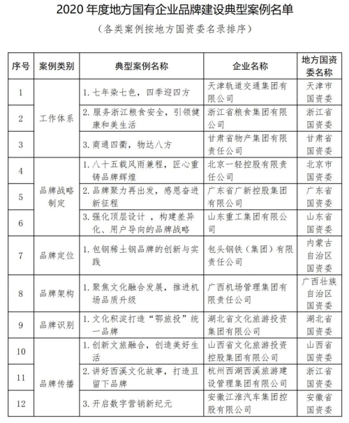 5月10日,由國(guo)家(jia)發展改革委(wei)等7部門和上海市政府共同主辦,國(guo)務(wu)院國(guo)資委(wei)特(te)別支持(chi)的(de)2021年中國(guo)品(pin)牌日活動在上海舉辦。 活動現場,國資委指導舉辦了中國企業品牌建設分論壇,會上發布了《2020年度中央企業品牌建設發展報告》、2020年度100個國有企業品牌建設典型案例和100個優秀品牌故事。中國兵器工業集團北重集團的“技術創新和商業模式創新并驅,打造知名民族礦用車品牌”入選2020年度100個國有企業品牌建設典型案例,中國兵器工業集團北方公司的微電影《大山里升起的希望》入選2020年度100個優秀品牌故事。 《2020年度中央企(qi)業(ye)品牌建設發展(zhan)報告(gao)》分(fen)析了當前中央企(qi)業(ye)加(jia)強品牌建設的形(xing)勢要求,從(cong)戰略(lve)引領、專業(ye)運(yun)營(ying)、支撐保障、組織管控、全球(qiu)推廣5個方面總結(jie)了中央企(qi)業(ye)年度品牌建設進展(zhan)。 2020年(nian)度100個(ge)國有企業(ye)品(pin)(pin)牌(pai)(pai)建設典型案例和100個(ge)優秀(xiu)品(pin)(pin)牌(pai)(pai)故事(shi),匯(hui)集企業(ye)優秀(xiu)經驗(yan)做法,豐富國企品(pin)(pin)牌(pai)(pai)資源池,促(cu)進企業(ye)相互(hu)學(xue)習借鑒,加快(kuai)提高品(pin)(pin)牌(pai)(pai)管(guan)理專(zhuan)業(ye)化水(shui)平。 2020年度100個國有企業 品牌建設典型案例 來源/國資小新 |