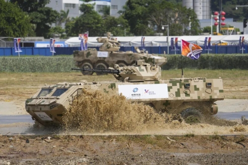 裝(zhuang)甲突擊領域,參展(zhan)產品擁有強大的(de)武(wu)器系統、良好的(de)越(yue)野機動性、先(xian)進的(de)信息系統,具(ju)有跑的(de)快、打(da)的(de)準、防的(de)住(zhu)、信息化(hua)智能(neng)化(hua)程度高(gao)等特點。