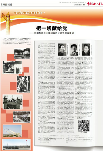 1月6日,貫徹落實中(zhong)(zhong)央企(qi)(qi)業黨的建設工作(zuo)座談會精(jing)神專題(ti)推進(jin)會在京召開。會上,中(zhong)(zhong)國(guo)兵(bing)器工業集團(tuan)有限(xian)公(gong)司(si)等(deng)5家單位作(zuo)了“賡續央企(qi)(qi)精(jing)神血脈(mo)”主題(ti)宣講報告。3月21日,《中(zhong)(zhong)國(guo)組織人事報》刊發賡續央企(qi)(qi)精(jing)神血脈(mo)系列之一——《把一切獻(xian)給黨——中(zhong)(zhong)國(guo)兵(bing)器工業集團(tuan)有限(xian)公(gong)司(si)主題(ti)宣講詞》。