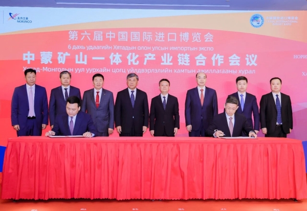 11月(yue)4日(ri),中蒙(meng)(meng)礦(kuang)山(shan)(shan)(shan)一(yi)體化產(chan)業鏈(lian)合作(zuo)(zuo)會(hui)(hui)(hui)議在上(shang)海舉(ju)行(xing),圍繞蒙(meng)(meng)古礦(kuang)山(shan)(shan)(shan)一(yi)體化項目拓展延(yan)伸上(shang)下游(you)產(chan)業鏈(lian),共簽(qian)署(shu)4項合作(zuo)(zuo)協議,進一(yi)步深化各方互利合作(zuo)(zuo),促進產(chan)業鏈(lian)融(rong)通發展。蒙(meng)(meng)古國(guo)政(zheng)府部長(chang)、國(guo)家(jia)大(da)呼拉爾委(wei)(wei)(wei)(wei)員博爾呼·德(de)力(li)格(ge)爾塞(sai)汗(han),駐華(hua)特(te)命全權大(da)使(shi)圖布辛(xin)·巴(ba)德(de)爾勒,大(da)呼拉爾委(wei)(wei)(wei)(wei)員特(te)木爾陶高·恩(en)和圖布行(xing),部長(chang)、國(guo)家(jia)口岸復興委(wei)(wei)(wei)(wei)員會(hui)(hui)(hui)主席布亞(ya)·圖力(li)嘎,國(guo)務院(yuan)國(guo)資委(wei)(wei)(wei)(wei)副主任茍坪,國(guo)際合作(zuo)(zuo)局(ju)局(ju)長(chang)朱(zhu)凱,商務部亞(ya)洲司(si)司(si)長(chang)王立平(ping),中國(guo)北(bei)方工(gong)業集團(tuan)有(you)限(xian)(xian)公(gong)司(si)總經(jing)理、黨(dang)組副書(shu)(shu)記(ji)劉大(da)山(shan)(shan)(shan),副總經(jing)理植玉林,內蒙(meng)(meng)古自(zi)治區黨(dang)委(wei)(wei)(wei)(wei)常委(wei)(wei)(wei)(wei)、包頭市(shi)委(wei)(wei)(wei)(wei)書(shu)(shu)記(ji)丁繡峰(feng),鞍(an)(an)山(shan)(shan)(shan)市(shi)委(wei)(wei)(wei)(wei)書(shu)(shu)記(ji)王忠昆,鞍(an)(an)鋼集團(tuan)黨(dang)委(wei)(wei)(wei)(wei)常委(wei)(wei)(wei)(wei)、副總經(jing)理、鞍(an)(an)山(shan)(shan)(shan)市(shi)委(wei)(wei)(wei)(wei)常委(wei)(wei)(wei)(wei)王義棟,包頭鋼鐵(集團(tuan))有(you)限(xian)(xian)責任公(gong)司(si)黨(dang)委(wei)(wei)(wei)(wei)書(shu)(shu)記(ji)、董事(shi)長(chang)孟繁英,中國(guo)北(bei)方工(gong)業有(you)限(xian)(xian)公(gong)司(si)總裁陳德(de)芳出席會(hui)(hui)(hui)議并見(jian)證簽(qian)約。北(bei)方國(guo)際合作(zuo)(zuo)股份(fen)有(you)限(xian)(xian)公(gong)司(si)董事(shi)長(chang)、黨(dang)委(wei)(wei)(wei)(wei)書(shu)(shu)記(ji)紀巍主持會(hui)(hui)(hui)議。
