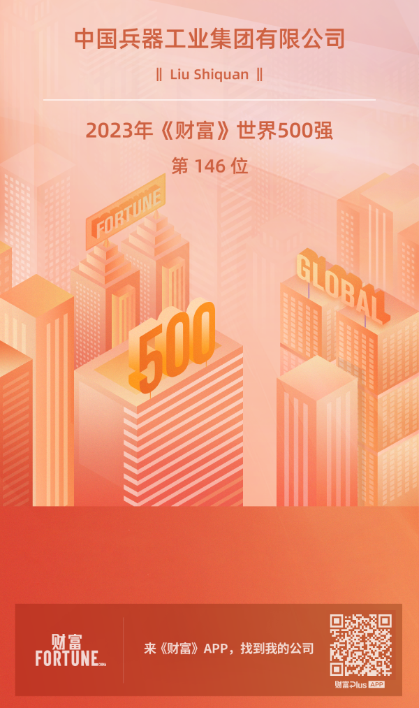 8月2日(ri),2023年(nian)《財富》世界500強排行榜(bang)正式(shi)發布,中(zhong)國兵器(qi)工(gong)業(ye)集團有限公司以(yi)826.89億美(mei)元的營業(ye)收入排名第146位,連續第14年(nian)入榜(bang)。