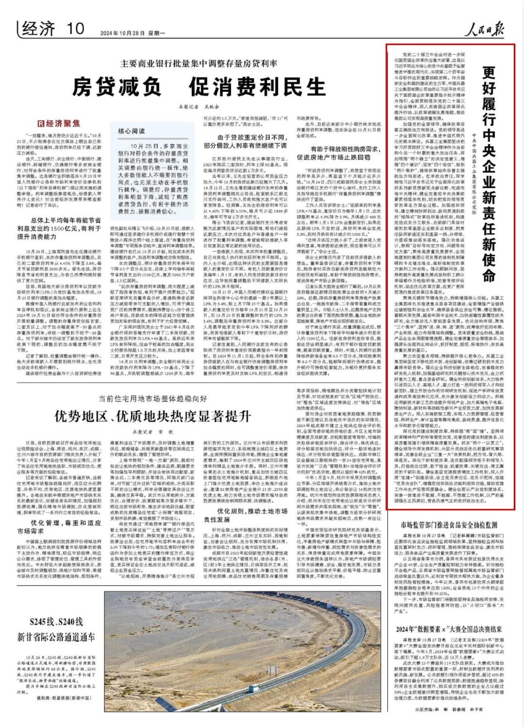10月28日,《人民日報》刊發中國兵器工業集團有限公司黨組署(shu)名文章《更(geng)好履行中央(yang)企(qi)業新責任新使命》。全文如下: 黨(dang)的(de)二十(shi)屆(jie)三中(zhong)全(quan)會(hui)對進一(yi)步深(shen)(shen)化(hua)國(guo)(guo)(guo)資國(guo)(guo)(guo)企(qi)改革作(zuo)出重(zhong)大部署,這是以(yi)習近平同(tong)志為(wei)(wei)核心(xin)的(de)黨(dang)中(zhong)央著眼于全(quan)面(mian)推(tui)進中(zhong)國(guo)(guo)(guo)式現(xian)(xian)代(dai)化(hua)、實(shi)現(xian)(xian)第二個百(bai)年奮斗目標(biao)作(zuo)出的(de)重(zhong)要(yao)戰略安(an)排。作(zuo)為(wei)(wei)國(guo)(guo)(guo)家安(an)全(quan)和國(guo)(guo)(guo)防建設的(de)主力軍,中(zhong)國(guo)(guo)(guo)兵器工業(ye)集(ji)團有限公(gong)司始終(zhong)以(yi)習近平總書記關于國(guo)(guo)(guo)資國(guo)(guo)(guo)企(qi)改革重(zhong)要(yao)指示批示精神為(wei)(wei)指引,全(quan)面(mian)貫徹落實(shi)黨(dang)的(de)二十(shi)屆(jie)三中(zhong)全(quan)會(hui)精神,深(shen)(shen)入(ru)實(shi)施國(guo)(guo)(guo)企(qi)改革深(shen)(shen)化(hua)提升行動(dong),以(yi)改革破(po)解發展(zhan)難題,推(tui)動(dong)集(ji)團公(gong)司實(shi)現(xian)(xian)高質量發展(zhan)。 加(jia)強(qiang)(qiang)黨(dang)的(de)全(quan)面(mian)(mian)領(ling)(ling)導(dao),確(que)(que)保改(gai)革(ge)沿(yan)著正確(que)(que)政(zheng)治(zhi)方(fang)向(xiang)前(qian)(qian)進(jin)(jin)(jin)。黨(dang)的(de)領(ling)(ling)導(dao)是進(jin)(jin)(jin)一步全(quan)面(mian)(mian)深(shen)化改(gai)革(ge)、推(tui)(tui)進(jin)(jin)(jin)中國(guo)式(shi)現代化的(de)根(gen)本(ben)保證。兵器工業集(ji)團堅決(jue)(jue)把(ba)學習好貫徹(che)好三(san)中全(quan)會精神作為當(dang)前(qian)(qian)和(he)今后(hou)一個(ge)時(shi)期的(de)重(zhong)大(da)政(zheng)治(zhi)任務,深(shen)刻領(ling)(ling)悟(wu)“兩個(ge)確(que)(que)立(li)”的(de)決(jue)(jue)定(ding)性(xing)意(yi)(yi)義,增強(qiang)(qiang)“四(si)個(ge)意(yi)(yi)識”、堅定(ding)“四(si)個(ge)自(zi)信(xin)”、做(zuo)到“兩個(ge)維護”,確(que)(que)保改(gai)革(ge)始終沿(yan)著正確(que)(que)政(zheng)治(zhi)方(fang)向(xiang)前(qian)(qian)進(jin)(jin)(jin)。扛牢政(zheng)治(zhi)責任,深(shen)學細悟(wu)習近平總(zong)書記關(guan)于全(quan)面(mian)(mian)深(shen)化改(gai)革(ge)的(de)系(xi)列新思想新觀(guan)點(dian)新論斷,吃(chi)(chi)透吃(chi)(chi)準中央精神,健全(quan)完(wan)善黨(dang)中央決(jue)(jue)策(ce)部(bu)署貫徹(che)落(luo)(luo)(luo)實(shi)(shi)機(ji)制(zhi)(zhi),切實(shi)(shi)把(ba)黨(dang)的(de)領(ling)(ling)導(dao)貫穿改(gai)革(ge)各方(fang)面(mian)(mian)全(quan)過程。加(jia)強(qiang)(qiang)組(zu)織(zhi)領(ling)(ling)導(dao),建立(li)橫(heng)向(xiang)協(xie)同到邊、縱向(xiang)貫通(tong)到底的(de)“矩陣式(shi)”改(gai)革(ge)組(zu)織(zhi)推(tui)(tui)進(jin)(jin)(jin)機(ji)制(zhi)(zhi),構建黨(dang)組(zu)成員分工聯系(xi)、總(zong)部(bu)部(bu)門具體(ti)對接的(de)改(gai)革(ge)基層(ceng)企業聯系(xi)點(dian)制(zhi)(zhi)度,把(ba)責任縱深(shen)穿透壓實(shi)(shi)到基層(ceng)一線,分領(ling)(ling)域、分層(ceng)級推(tui)(tui)動落(luo)(luo)(luo)實(shi)(shi)落(luo)(luo)(luo)地。強(qiang)(qiang)化總(zong)體(ti)設計,按照(zhao)“目標(biao)導(dao)向(xiang)定(ding)方(fang)向(xiang)、問(wen)題(ti)導(dao)向(xiang)定(ding)方(fang)案(an)”,聚焦高(gao)質量發(fa)展(zhan)要(yao)求,全(quan)面(mian)(mian)梳理(li)制(zhi)(zhi)約集(ji)團公司發(fa)展(zhan)的(de)體(ti)制(zhi)(zhi)機(ji)制(zhi)(zhi)障礙和(he)卡點(dian)堵(du)點(dian)難點(dian),高(gao)標(biao)準制(zhi)(zhi)定(ding)改(gai)革(ge)方(fang)案(an)和(he)工作臺賬。強(qiang)(qiang)化跟蹤問(wen)效(xiao),堅持把(ba)提(ti)升(sheng)高(gao)質量發(fa)展(zhan)成效(xiao)和(he)職(zhi)工群眾幸福感作為檢驗標(biao)準,完(wan)善考核評(ping)估(gu)機(ji)制(zhi)(zhi),動態(tai)優(you)化改(gai)革(ge)方(fang)案(an),在(zai)更廣更深(shen)范圍內推(tui)(tui)進(jin)(jin)(jin)改(gai)革(ge)任務落(luo)(luo)(luo)實(shi)(shi)。 聚焦(jiao)關鍵環節(jie)精準發(fa)力(li),持(chi)續增(zeng)強核心功能。兵(bing)器工業集(ji)團將(jiang)扎實推進重點(dian)裝備(bei)項目(mu)建(jian)設,全面增(zeng)強產(chan)業鏈(lian)供應鏈(lian)韌性(xing)和安(an)全水平,確(que)保裝備(bei)供應安(an)全可靠(kao)、健壯強韌。著(zhu)眼未來(lai)發(fa)展,超前布(bu)局(ju)(ju)專業技(ji)術,加快前瞻性(xing)顛覆性(xing)技(ji)術研究,全力(li)推動(dong)無(wu)人(ren)智能裝備(bei)發(fa)展。優化結(jie)構布(bu)局(ju)(ju),聚焦(jiao)“三個集(ji)中(zhong)”,堅(jian)持(chi)“進、保、轉、退”原則,統籌做好空間布(bu)局(ju)(ju)、產(chan)業布(bu)局(ju)(ju)、能力(li)布(bu)局(ju)(ju)等結(jie)構調整(zheng)。筑牢質量(liang)安(an)全防線,圍繞(rao)產(chan)品全生命周期管理流(liu)程(cheng),健全完(wan)善質量(liang)安(an)全管理體系(xi),加強源頭治理和正向(xiang)設計,抓好制度、規范、標準執行,夯實高質量(liang)發(fa)展的基石。 聚力(li)攻(gong)堅重(zhong)點領域(yu),持續提(ti)(ti)升核(he)心競爭(zheng)力(li)。兵(bing)器工(gong)業(ye)集團將(jiang)堅定不移(yi)吃技(ji)術(shu)飯(fan)、走創新路(lu),依靠過硬(ying)的(de)(de)技(ji)術(shu)實(shi)力(li)贏(ying)得市場競爭(zheng)。強(qiang)化(hua)企業(ye)科技(ji)創新主(zhu)體地位,完善穩定的(de)(de)研(yan)發(fa)(fa)投入機制(zhi)(zhi)(zhi)(zhi),加(jia)強(qiang)基(ji)礎(chu)研(yan)究(jiu)和(he)關鍵核(he)心技(ji)術(shu)攻(gong)關,