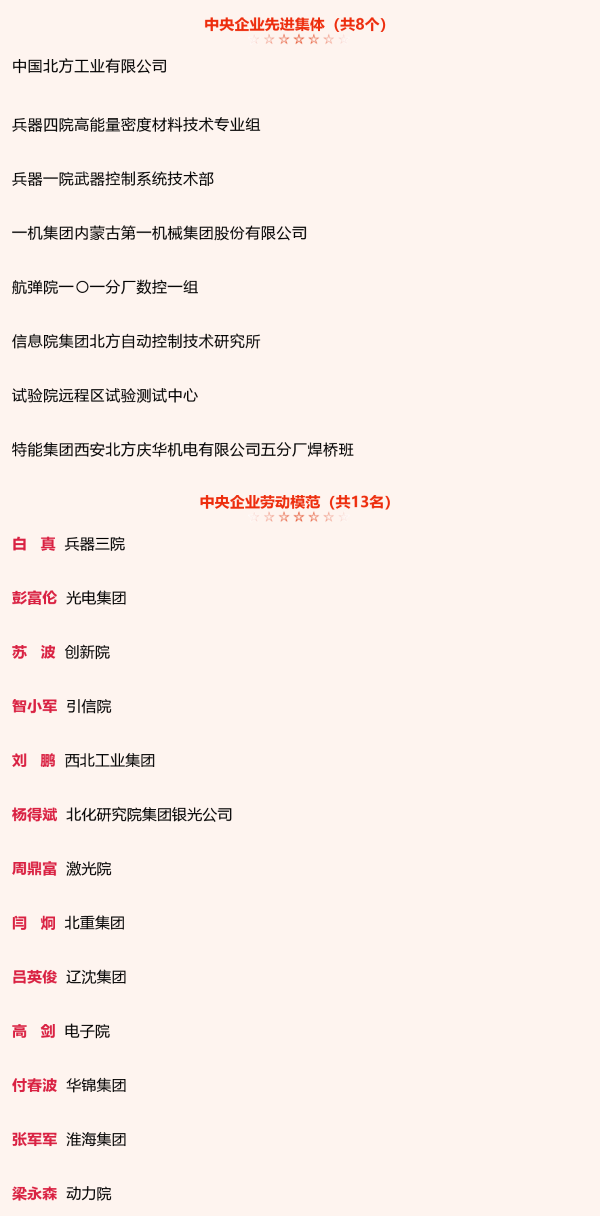 兵器工(gong)業(ye)(ye)集(ji)(ji)團(tuan)堅持以習近平新(xin)時代中(zhong)(zhong)國(guo)(guo)特色社會主義(yi)思想為(wei)(wei)指導,深入貫徹落實黨的(de)二十屆三中(zhong)(zhong)全會精(jing)(jing)神,大力(li)弘揚(yang)勞模精(jing)(jing)神、勞動(dong)(dong)精(jing)(jing)神和工(gong)匠精(jing)(jing)神,營造學習先(xian)進(jin)、追趕先(xian)進(jin)、爭做先(xian)進(jin)的(de)良好氛圍,激勵(li)集(ji)(ji)團(tuan)公司(si)廣大干(gan)部職工(gong)在履行強軍(jun)首責、推動(dong)(dong)高質(zhi)量發展的(de)新(xin)征程中(zhong)(zhong)建(jian)(jian)功立業(ye)(ye),為(wei)(wei)加快(kuai)建(jian)(jian)設具有全球競爭力(li)的(de)世界(jie)一流企業(ye)(ye)貢(gong)獻智慧和力(li)量,以優異成(cheng)(cheng)績迎接中(zhong)(zhong)華人民共和國(guo)(guo)成(cheng)(cheng)立75周年!(黨群工(gong)作部)