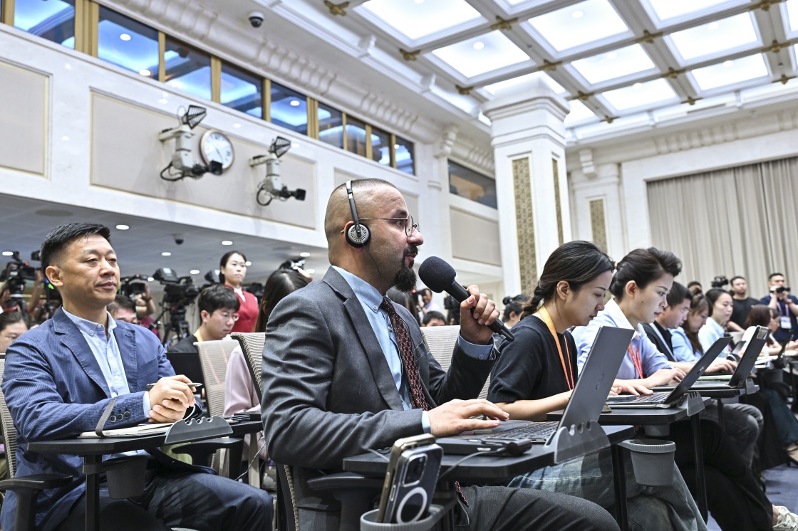 8月20日(ri),國(guo)務院新聞辦(ban)公(gong)(gong)室(shi)在(zai)(zai)北京(jing)舉行新聞發布會(hui),閱(yue)兵(bing)領導小組(zu)辦(ban)公(gong)(gong)室(shi)副(fu)主任、中(zhong)央軍委聯合參謀部作戰局少將(jiang)副(fu)局長吳澤棵,中(zhong)國(guo)人民(min)解放軍中(zhong)部戰區閱(yue)兵(bing)指揮機(ji)構辦(ban)公(gong)(gong)室(shi)常務副(fu)主任、政(zheng)治工作部少將(jiang)副(fu)主任徐貴忠介紹閱(yue)兵(bing)準備工作有關情況,并答記(ji)者問。這是記(ji)者在(zai)(zai)現場(chang)提問。